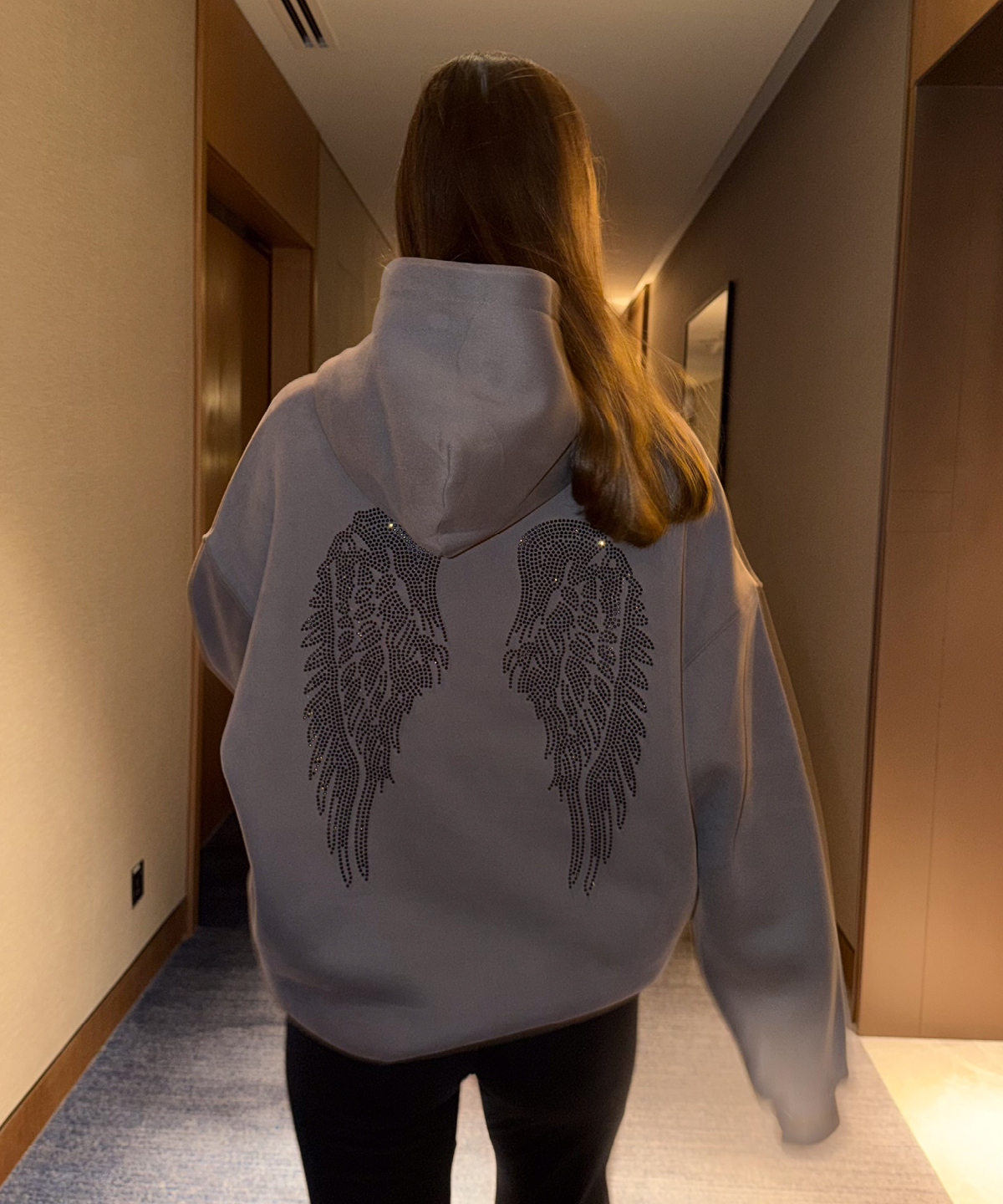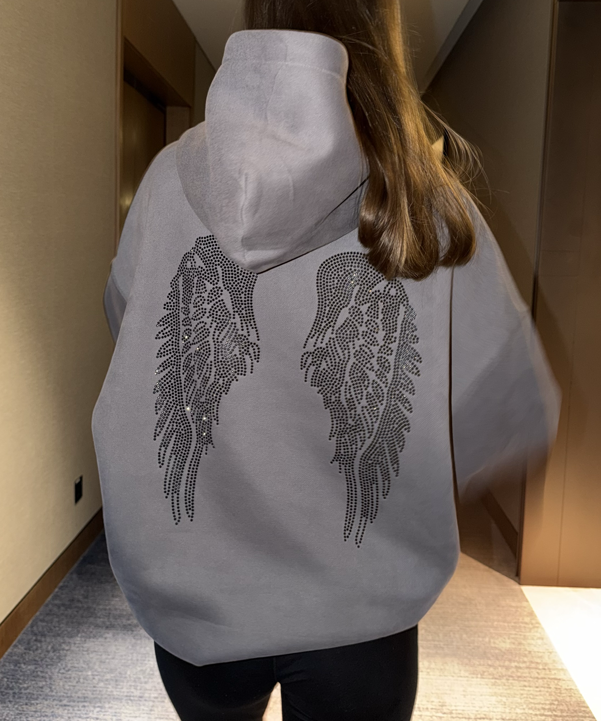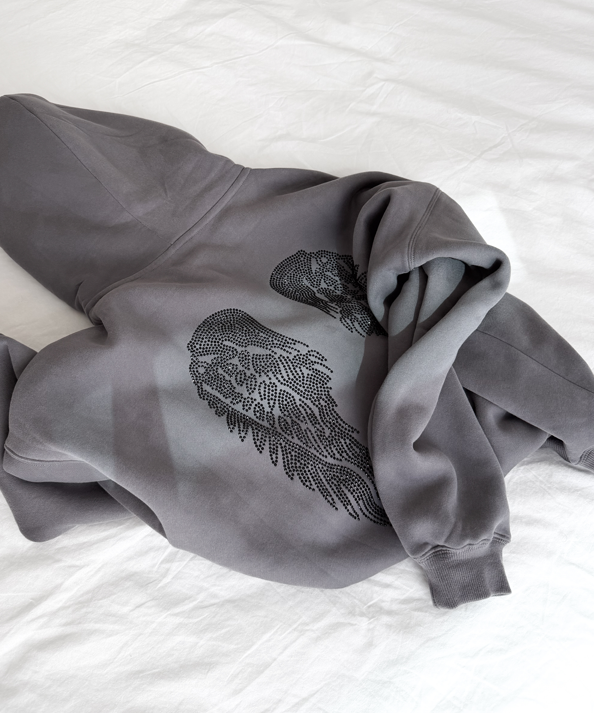 HOODIE ANGEL CHARCOAL GREY STRASS BLACK