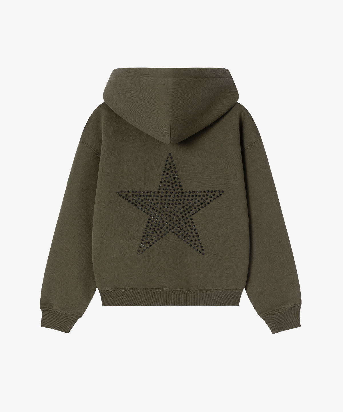 HOODIE OLIVE GREEN STAR STRASS BLACK